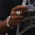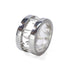 THE THORN BAND RING consists of two silver bands. In the negative space between them, silver thorns grow. This ring is made of 925 Sterling Silver.